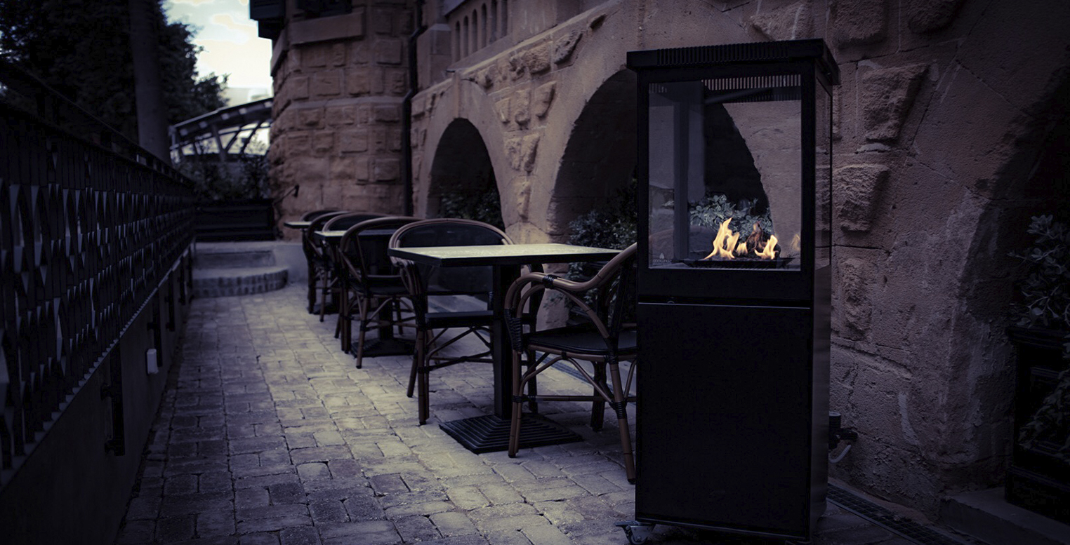 Sunwood Heater is suited for use in the hospitality industry. The design and the flames will create a refined atmosphere on the terrace of your venue and will keep your guests warm.